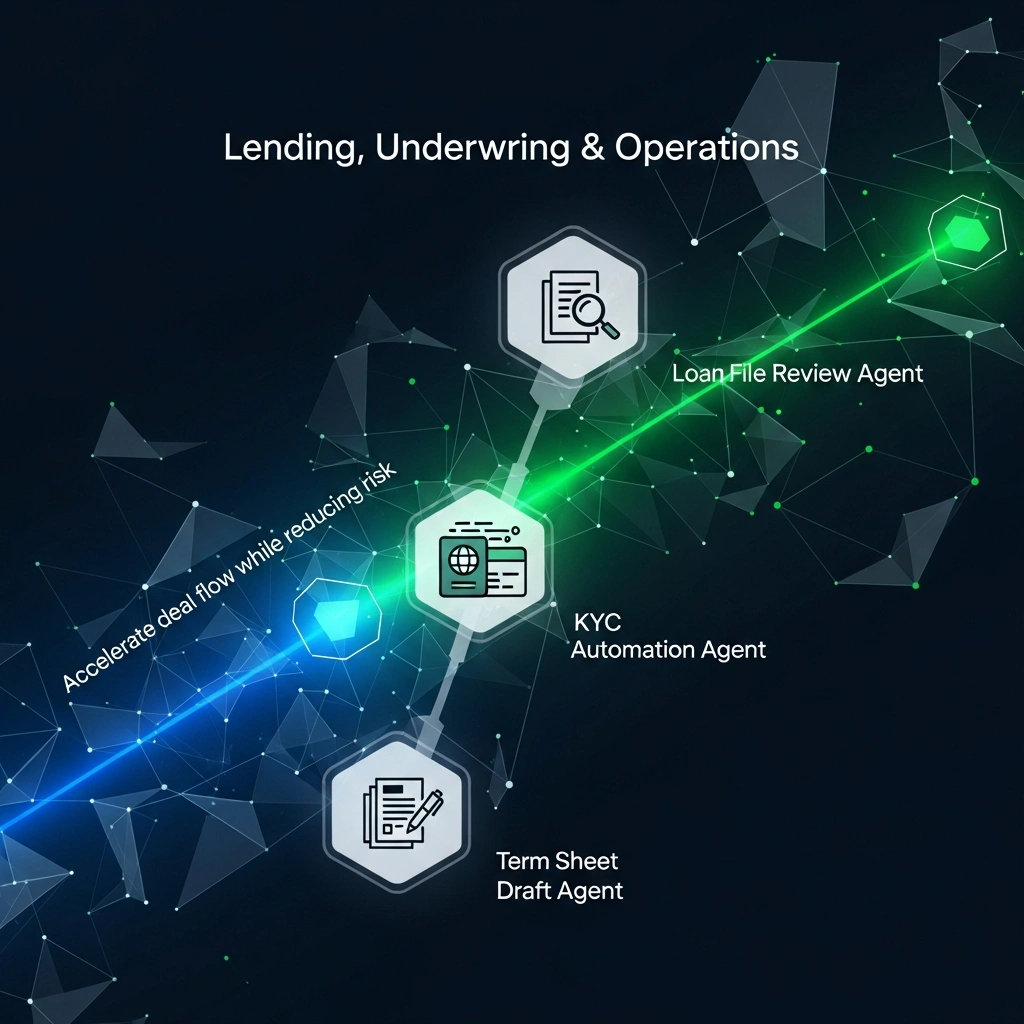 Autonomously reviews loan submissions against your internal credit policies, flagging exceptions and generating immediate decision memos.