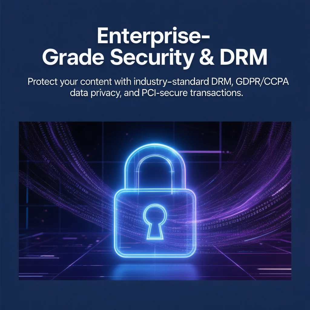 Integrations for industry-standard DRM (Digital Rights Management) to prevent unauthorized redistribution.